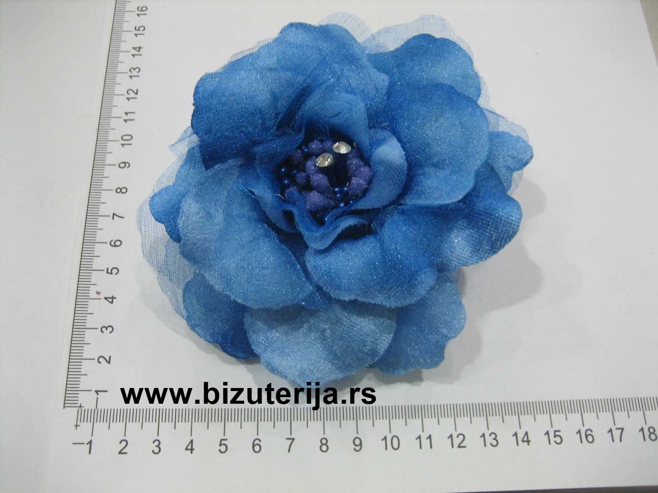 Plavi cvet na šnali, brošu i gumici