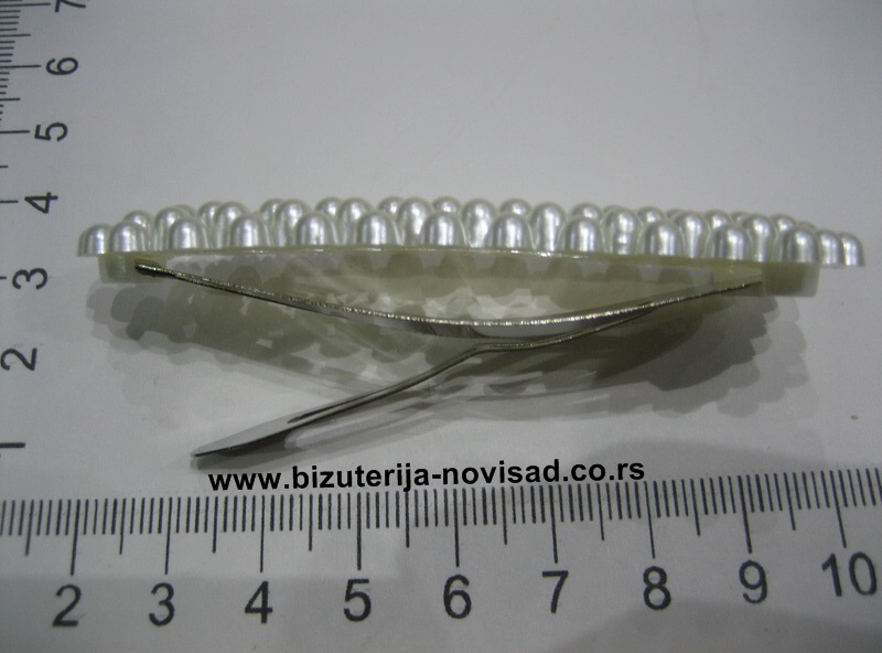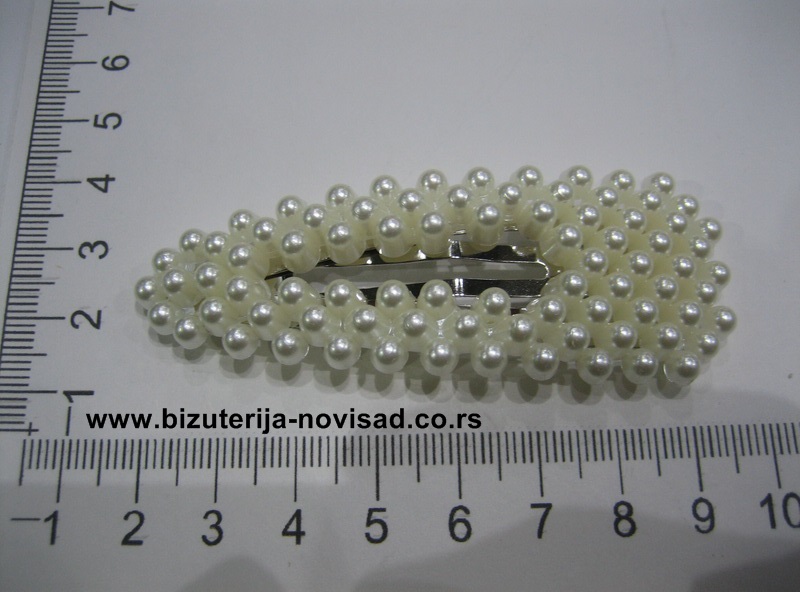 Šnala sa biserima. Trendi ukras za kosu, metalna šnala boje srebra ukrašena biserima.